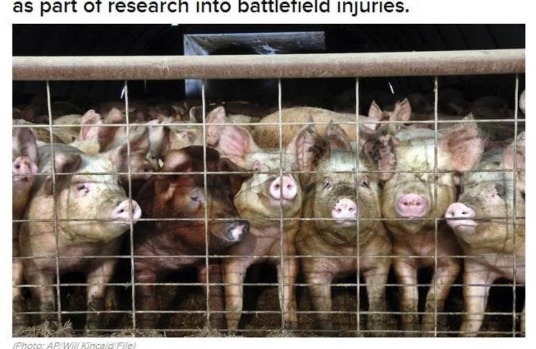 O Exército britânico está usando porcos para testar seu armamento e investigar os ferimentos causados em campos de batalha. Segundo um documento conseguido pelo tabloide britânico Mirror, o abatimento é parte de uma pesquisa para verificar se os porcos seriam capazes de sobreviver depois de um grave trauma, igual ao da guerra.
